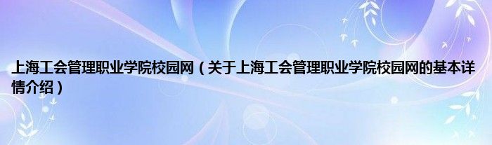 本文关于上海工会管理职业学院校园网的基本详情介绍就讲解完毕,希望对大家有所帮助。