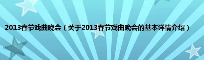 本文关于2013春节戏曲晚会的基本详情介绍就讲解完毕,希望对大家有所帮助。