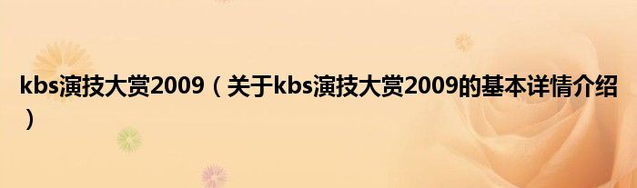 本文关于kbs演技大赏2009的基本详情介绍就讲解完毕,希望对大家有所帮助。