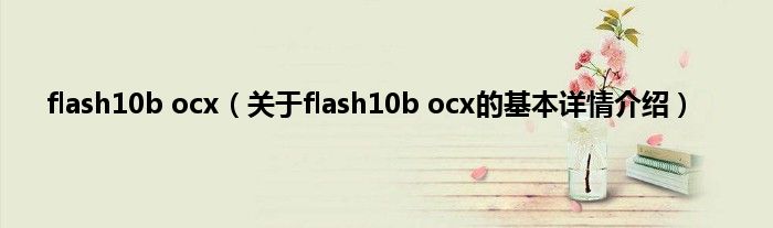 本文关于flash10b ocx的基本详情介绍就讲解完毕,希望对大家有所帮助。