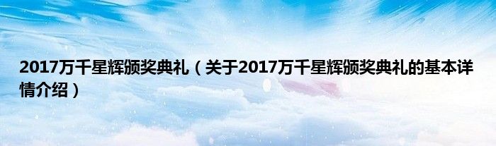 本文关于2017万千星辉颁奖典礼的基本详情介绍就讲解完毕,希望对大家有所帮助。