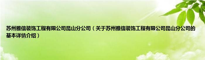 苏州雅信装饰工程有限公司昆山分公司(关于苏州雅信装饰工程有限公司昆山分公司的基本详情介绍)