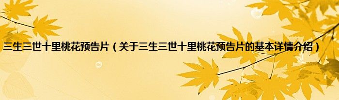 三生三世十里桃花预告片(关于三生三世十里桃花预告片的基本详情介绍)