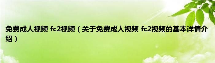 免费成人视频 fc2视频(关于免费成人视频 fc2视频的基本详情介绍)