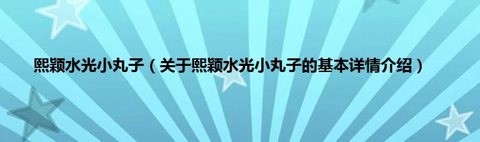 本文关于熙颖水光小丸子的基本详情介绍就讲解完毕,希望对大家有所帮助。
