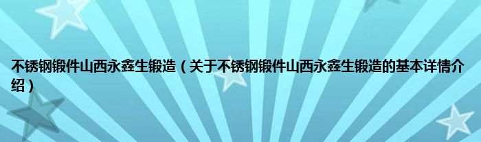 本文关于不锈钢锻件山西永鑫生锻造的基本详情介绍就讲解完毕,希望对大家有所帮助。