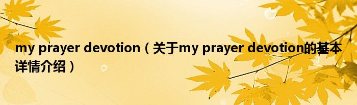 本文关于my prayer devotion的基本详情介绍就讲解完毕,希望对大家有所帮助。