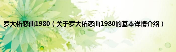 本文关于罗大佑恋曲1980的基本详情介绍就讲解完毕,希望对大家有所帮助。
