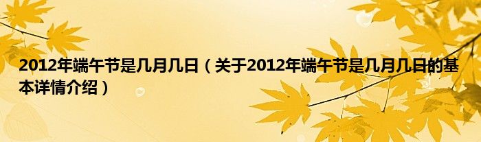本文关于2012年端午节是几月几日的基本详情介绍就讲解完毕,希望对大家有所帮助。