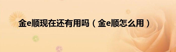 金e顺现在还有用吗(金e顺怎么用)