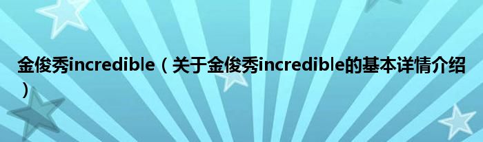 本文关于金俊秀incredible的基本详情介绍就讲解完毕,希望对大家有所帮助。