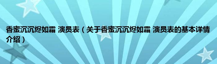 本文关于香蜜沉沉烬如霜 演员表的基本详情介绍就讲解完毕,希望对大家有所帮助。