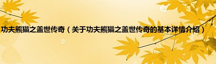 本文关于功夫熊猫之盖世传奇的基本详情介绍就讲解完毕,希望对大家有所帮助。