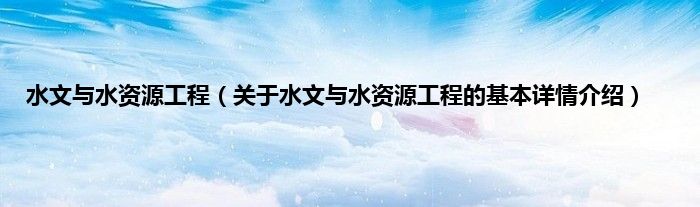 水文与水资源工程(关于水文与水资源工程的基本详情介绍)
