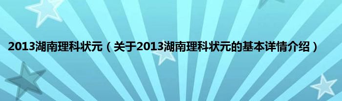 本文关于2013湖南理科状元的基本详情介绍就讲解完毕,希望对大家有所帮助。