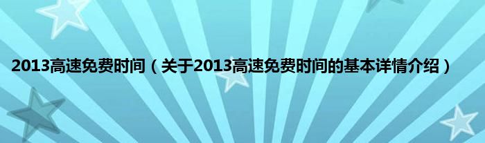 本文关于2013高速免费时间的基本详情介绍就讲解完毕,希望对大家有所帮助。