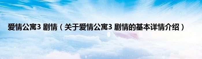 本文关于爱情公寓3 剧情的基本详情介绍就讲解完毕,希望对大家有所帮助。