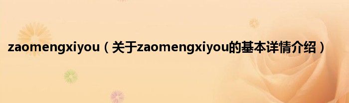 zaomengxiyou(关于zaomengxiyou的基本详情介绍)