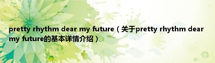 本文关于pretty rhythm dear my future的基本详情介绍就讲解完毕,希望对大家有所帮助。