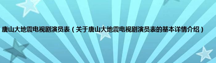 本文关于唐山大地震电视剧演员表的基本详情介绍就讲解完毕,希望对大家有所帮助。
