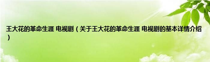 本文关于王大花的革命生涯 电视剧的基本详情介绍就讲解完毕,希望对大家有所帮助。