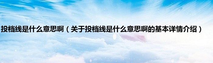 本文关于投档线是什么意思啊的基本详情介绍就讲解完毕,希望对大家有所帮助。