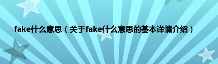 本文关于fake什么意思的基本详情介绍就讲解完毕,希望对大家有所帮助。