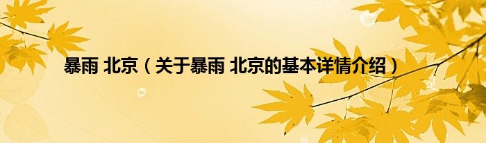 暴雨 北京(关于暴雨 北京的基本详情介绍)