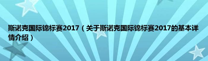 本文关于斯诺克国际锦标赛2017的基本详情介绍就讲解完毕,希望对大家有所帮助。