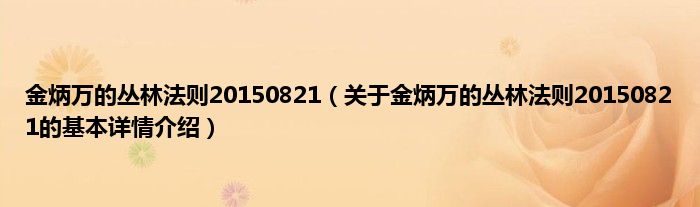 金炳万的丛林法则20150821(关于金炳万的丛林法则20150821的基本详情介绍)