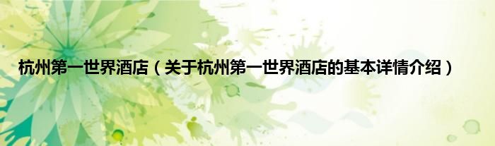本文关于杭州第一世界酒店的基本详情介绍就讲解完毕,希望对大家有所帮助。
