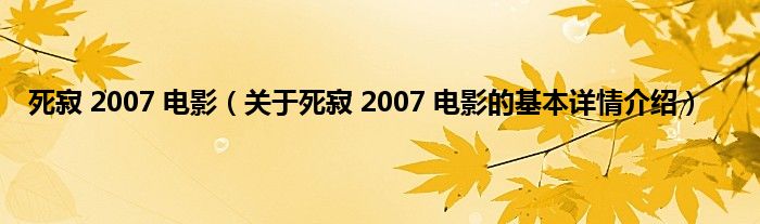 本文关于死寂 2007 电影的基本详情介绍就讲解完毕,希望对大家有所帮助。