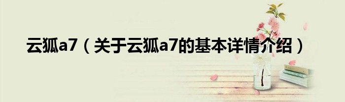 本文关于云狐a7的基本详情介绍就讲解完毕,希望对大家有所帮助。