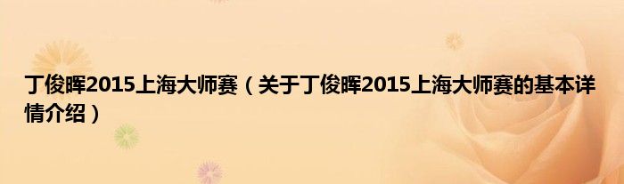 本文关于丁俊晖2015上海大师赛的基本详情介绍就讲解完毕,希望对大家有所帮助。