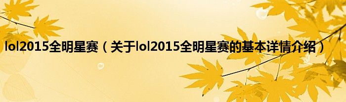 本文关于lol2015全明星赛的基本详情介绍就讲解完毕,希望对大家有所帮助。