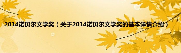 本文关于2014诺贝尔文学奖的基本详情介绍就讲解完毕,希望对大家有所帮助。