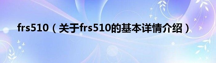 本文关于frs510的基本详情介绍就讲解完毕,希望对大家有所帮助。