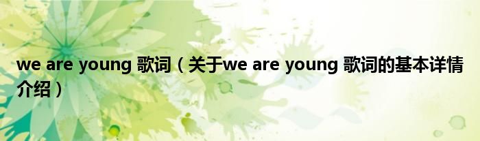本文关于we are young 歌词的基本详情介绍就讲解完毕,希望对大家有所帮助。