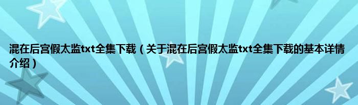 混在后宫假太监txt全集下载(关于混在后宫假太监txt全集下载的基本详情介绍)