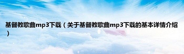 本文关于基督教歌曲mp3下载的基本详情介绍就讲解完毕,希望对大家有所帮助。