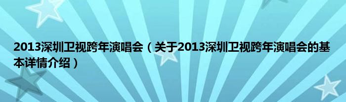 本文关于2013深圳卫视跨年演唱会的基本详情介绍就讲解完毕,希望对大家有所帮助。