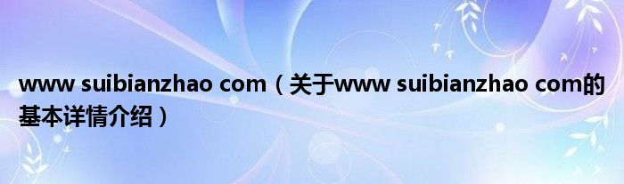 本文关于www suibianzhao com的基本详情介绍就讲解完毕,希望对大家有所帮助。