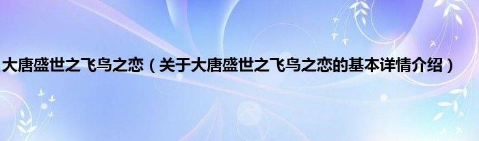 大唐盛世之飞鸟之恋(关于大唐盛世之飞鸟之恋的基本详情介绍)