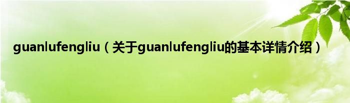 guanlufengliu(关于guanlufengliu的基本详情介绍)