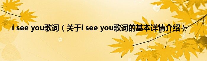 本文关于i see you歌词的基本详情介绍就讲解完毕,希望对大家有所帮助。