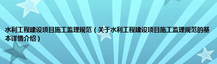 本文关于水利工程建设项目施工监理规范的基本详情介绍就讲解完毕,希望对大家有所帮助。