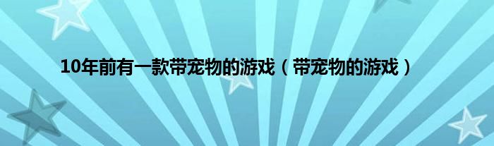 大家好,小问来为大家解答以上问题。10年前有一款带宠物的游戏,带宠物的游戏这个很多人还不知道,现在让我们一起来看看吧!