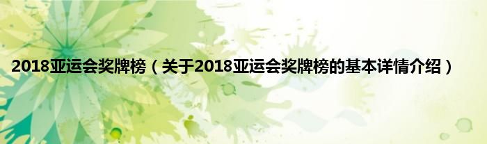 本文关于2018亚运会奖牌榜的基本详情介绍就讲解完毕,希望对大家有所帮助。