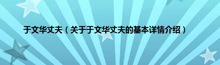于文华丈夫(关于于文华丈夫的基本详情介绍)