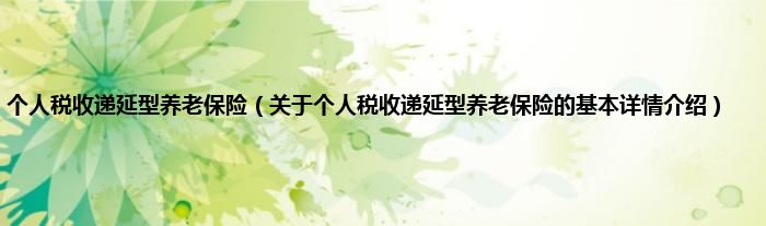 本文关于个人税收递延型养老保险的基本详情介绍就讲解完毕,希望对大家有所帮助。